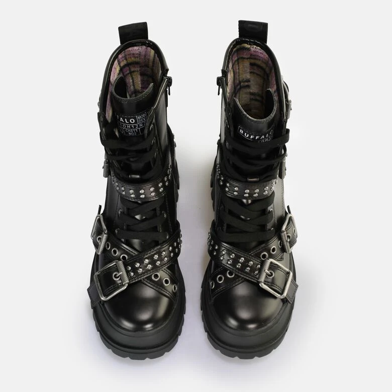In Dir schlummert ein wildes Girl? Der vegane Aspha Buckle Mid Ankle-Boot ist ein echter Killerschuh. Große Schnallen zieren den Boot und verleihen ihm einen ultimativen Biker-Style. Rocke jeden Floor und sage anderen Fashionistas den Kampf an. Für den nötigen Komfort sorgt dabei die herausnehmbare Sohle aus Memory Foam. Style den Boot zu schwarzen Hosen oder einem girly Dress.