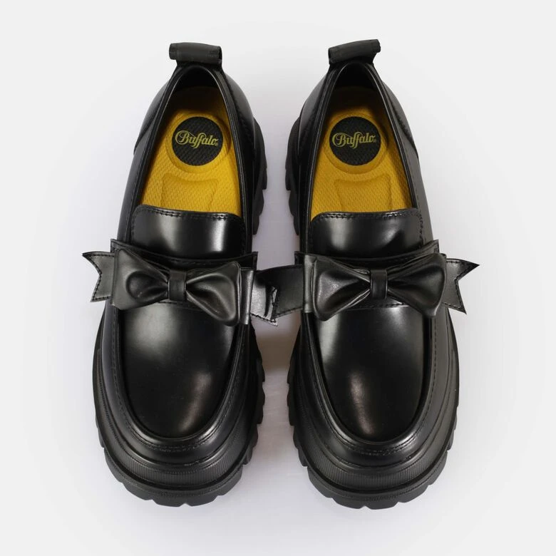 Mit dem Aspha Loafer Bow Halbschuh bist Du absolut En Vogue. Ein sweetes Design in tiefem Schwarz wird mit einer niedlichen Schleife zu einem absoluten Eyecatcher kombiniert. Dabei sorgt die Plateausohle bei diesem veganen Halbschuh für eine besonders coole Optik. Die Decksohle aus Memory Foam ist herausnehmbar und sorgt für einen weichen Walk. Trage die stylischen Halbschuhe zu einer lässigen Wide-Leg-Jeans.