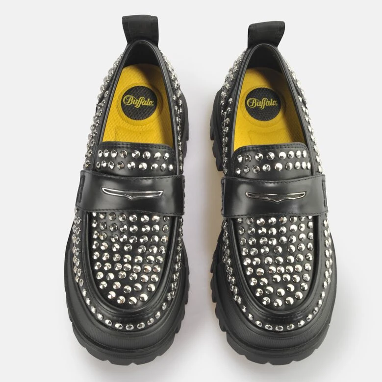 Werde die Queen of the streets mit dem stylischen Aspha Loafer Pin Halbschuh in veganer Lederoptik. Seinen besonderen Charme erhält der stilvolle Loafer dank der All-Over-Nieten und dem breiten Riemen auf der Front. Zudem sorgt die Profilsohle mit einer herausnehmbaren Innensohle mit Memory Foam für absolute Bequemlichkeit. Die chunky Silhouette rundet jeden Look perfekt ab.
