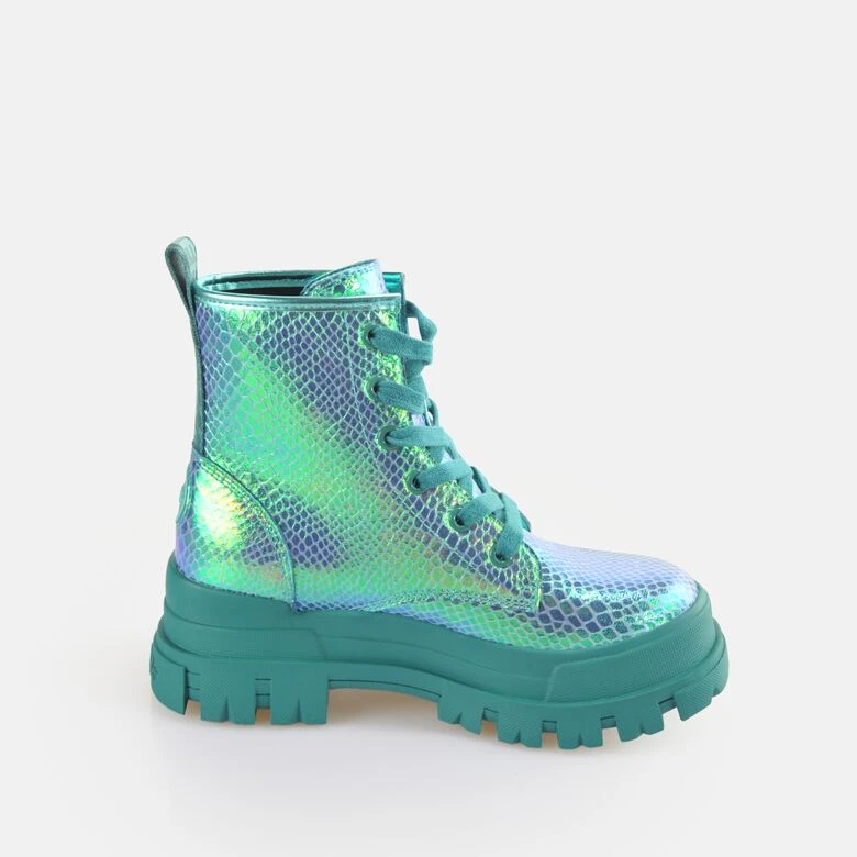 Unser beliebter Aspha RLD Ankle-Boot kommt jetzt mit einer modischen Profilsohle und einem trendy Farbton im Mermaid-Look. Das geschmeidige und vegane Nappa ist hochwertig verarbeitet und sorgt für ein schimmerndes Design. Dabei sorgt die hohe Schnürung für zuverlässigen Halt und mehr Stabilität. Im Inneren ist eine weiche und herausnehmbare Decksohle aus Memory Foam verarbeitet – eine Wohltat für Deine Füße.