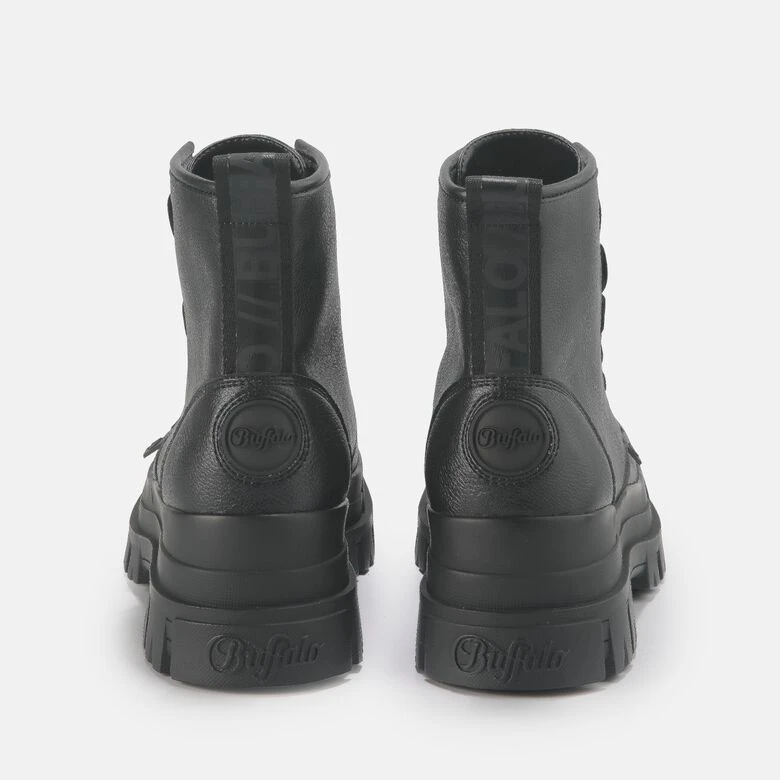 Im edgy Aspha Zip Ankle-Boot sagst Du anderen Fashionistas den Kampf an. Der All-Black-Combat Boot rüstet Dich zu Jeans oder Sommerkleid mit einem Maximum an Coolness aus. Trendige Schnürdetails flankieren den auffälligen Reißverschluss an der Schuhfront, sodass Du jede Fashion-Schlacht mit Stil gewinnst.