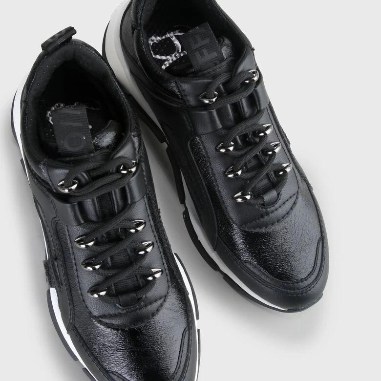 Der schwarze Batter Sleek Sneaker wartet mit einer modulierten Laufsohle auf, die Deinen Fuß angenehm stützt und für einen dynamischen Look sorgt. Ansonsten ist das Design ganz sportlich gehalten und Du kannst Dich beim Kombinieren voll austoben. Für noch einfacheres An- und Ausziehen ist der Schuh zudem mit einer praktischen Schlaufe ausgestattet.