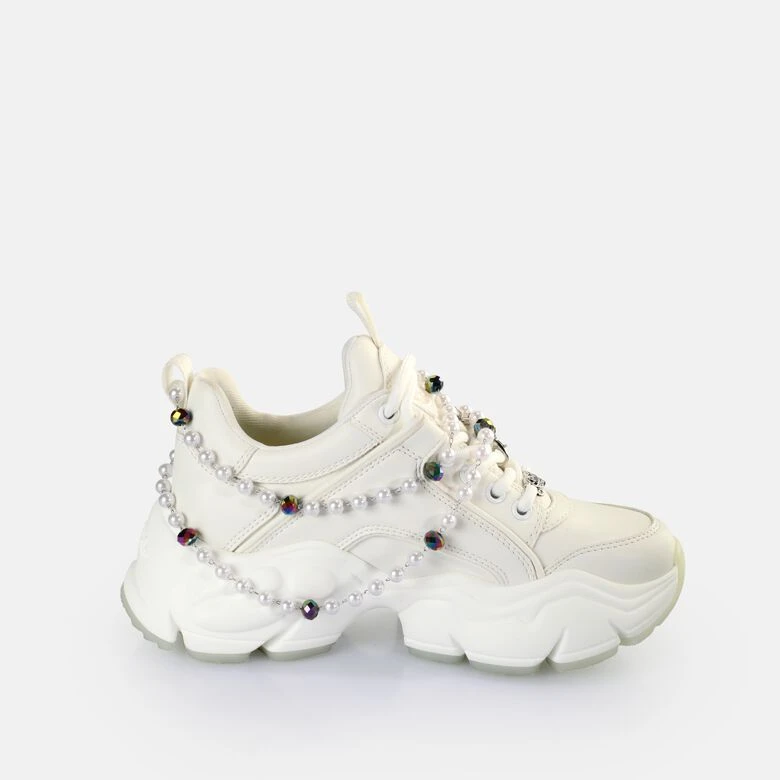 Der beliebte Binary Charm Sneaker Low kommt in einem cleanen und edlen Design. Eine Girly-Silhouette wird mit niedlichen Kettchen und Perlen verfeinert und stelllt einen einzigartigen Look dar. Dabei sorgen das besonders weiche Lycra-Futter sowie eine herausnehmbare Innensohle aus Memory Foam für einen hohen Tragekomfort. Ultraleicht und vegan verzaubert der Sneaker mit seinem einzigartigen Charme.