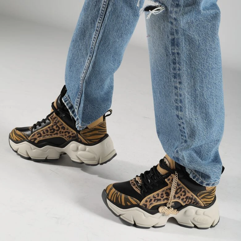 Sichere Dir einen einzigartigen Auftritt! Diese Binary Glam Low Sneaker kommen in einem wilden Animal-Print und mischen die Modeszene ordentlich auf. Dabei sitzt das vegane Upper auf einer ultraleichten Plateausohle in Weiß. Er ist ein echter Eyecatcher und verfügt über eine herausnehmbare Innensohle mit Memory Foam für einen herausragenden Komfort bei jedem Style. Breche alle Regeln mit diesem Must-have!
