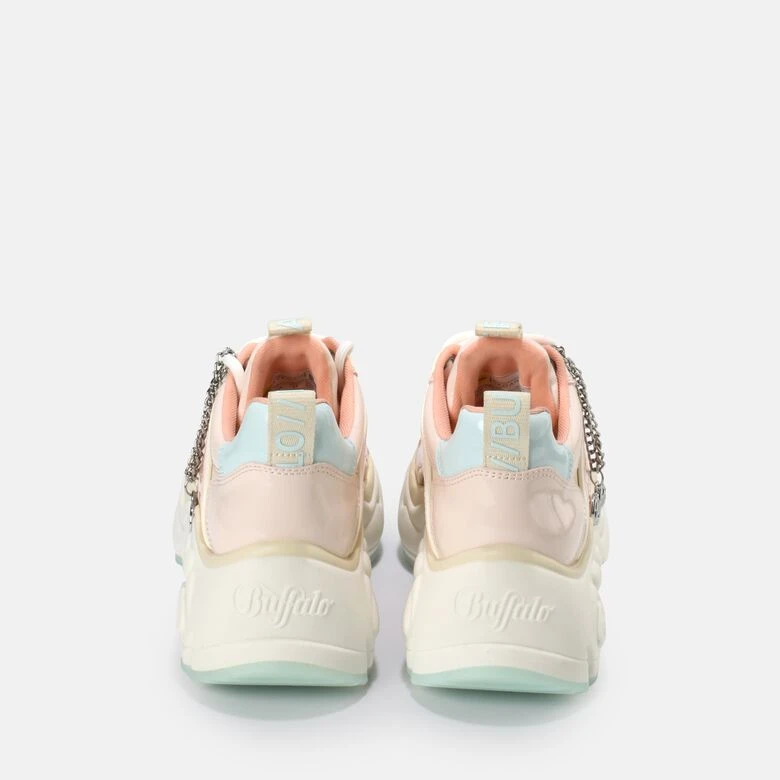 Pastellfarben sind nach wie vor DER Trend schlechthin und machen den Binary Sneaker zu einem girly Accessoire für Alltagslooks. In Rosé, Weiß und Babyblau gestaltet, lässt sich dieser Sneaker super zu luftigen Sommeroutfits wie auch modernen Winterlooks kombinieren. Abgerundet wird der coole Look von einem markanten Logo-Anhänger am Schaft.