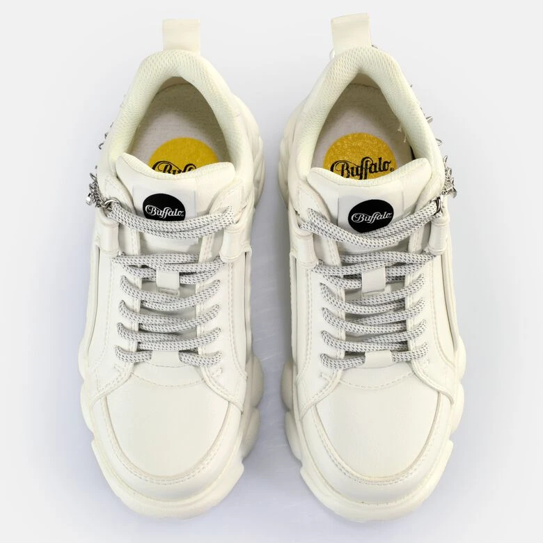 Ein ikonisches Schmuckstück sucht seinesgleichen. Den von der klassischen Chunky Sohle bis zum Schaft komplett weißen CLD Corin Charms Sneaker schmückt eine coole Silberkette mit originellen Charms. Das Kettchen verleiht dem veganen Leichtgewicht sein stylisches Design. Kombiniere den komfortablen Sneaker mit Memory-Schaum und auswechselbarem Fußbett mit Deinem lässigen Outfit am Tag oder dem Glitter-Look am Abend.