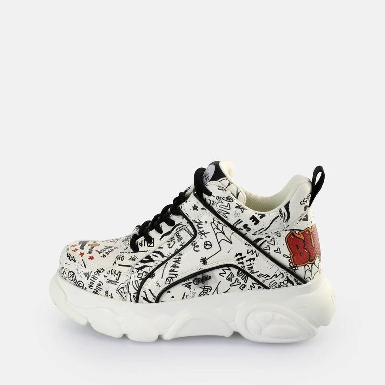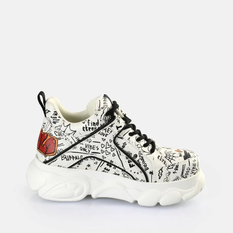 Graffitis im monochromen Schwarz-Weiß über der fünf Zentimeter hohen, weißen Chunky Sohle im Cloud-Design machen den CLD Corin Graffiti Sneaker Low zu einem absoluten Must Have. Er verwöhnt Deine Füße mit weichem Memory Schaum im Schaft und einem auswechselbaren Fußbett. Das coole Design dieser Sneaker ist witzig und vielseitig kombinierbar. Er passt zu lässiger Kleidung und zum Hosenanzug bildet er einen originellen Kontrast.