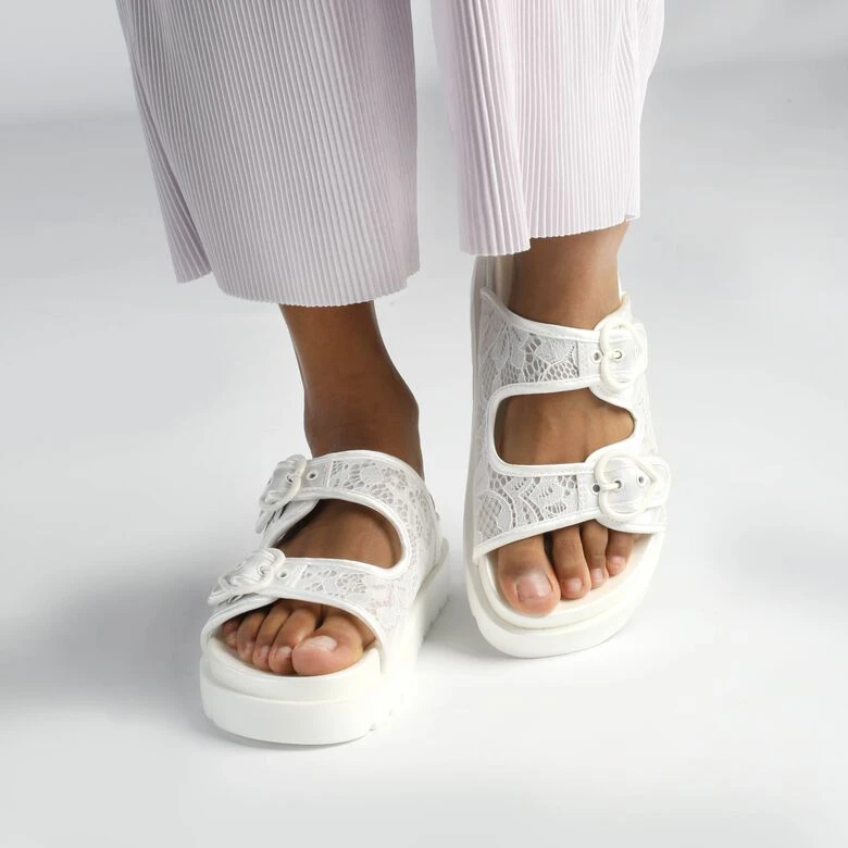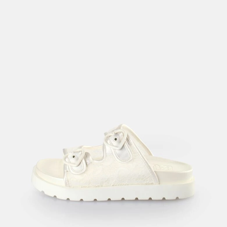 Du suchst nach dem perfekten Treter für wilde Tänze am Abend? Dann schlüpf in die bequemen Elly Slide Plateau Pool-Slides und genieße einen großartigen Komfort. Mit dem ultraleichten Gewicht und den verstellbaren Riemen kannst Du jeden Tanz ganz unbeschwert erleben. Gehe bei Deiner Hochzeit keine Kompromisse ein und lass Dich von den veganen Slides überzeugen.