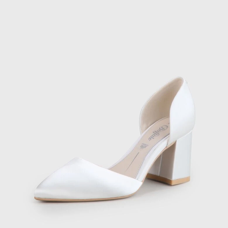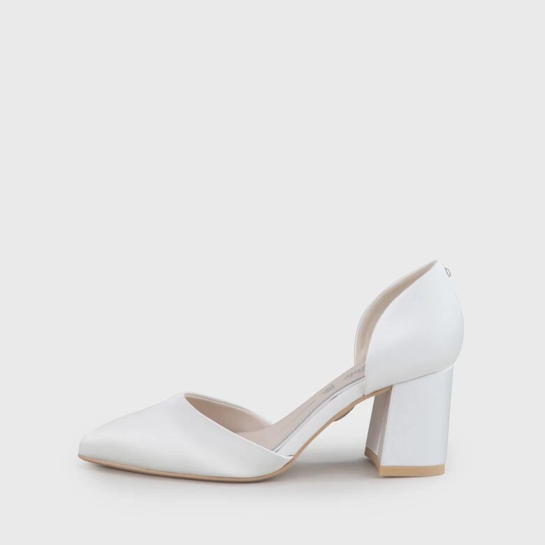 Der Flora Pump ist dank seiner schlichten, zeitlosen Eleganz der perfekte Schuhbegleiter an Deinem großen Tag als Braut. Die spitz zulaufende Form und raffinierte Cut-outs an den Seiten zaubern Deinem Fuß eine super feminine Silhouette, während glamouröser Satin in Elfenbein für einen Stylelight-Effekt am Fuß sorgt.