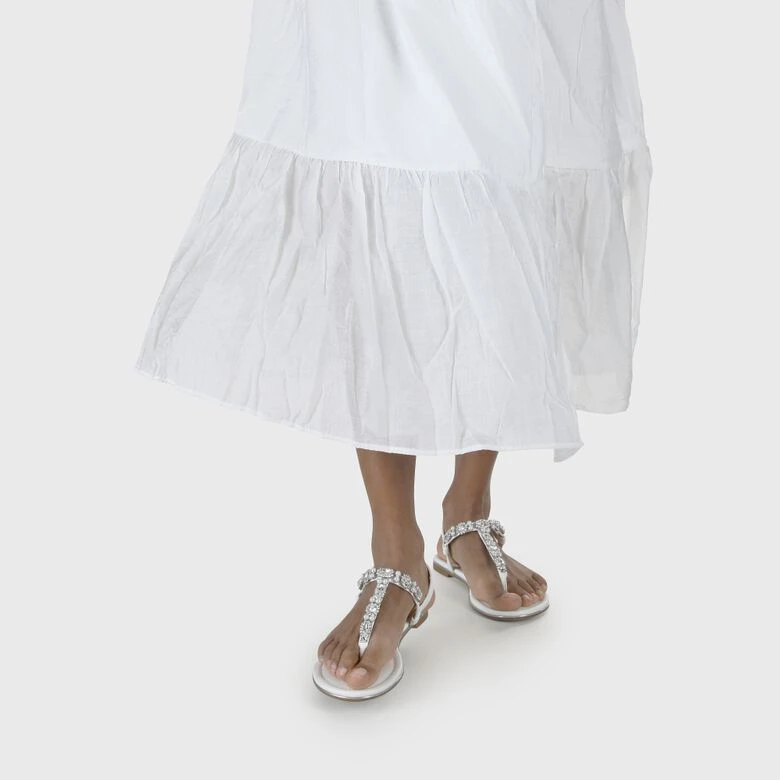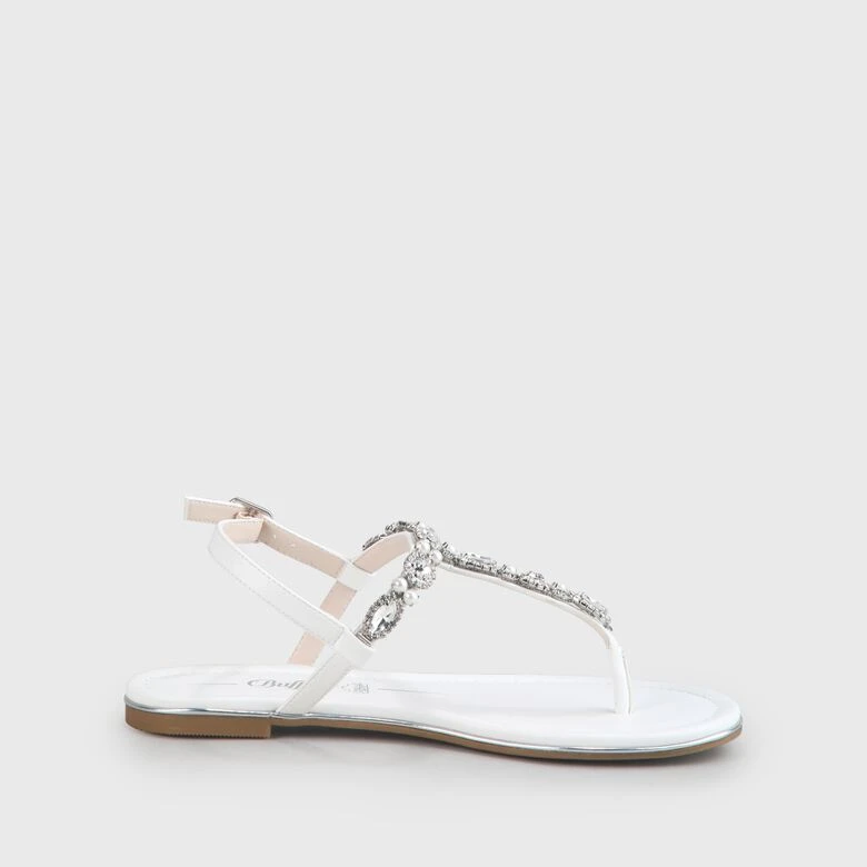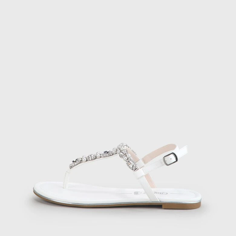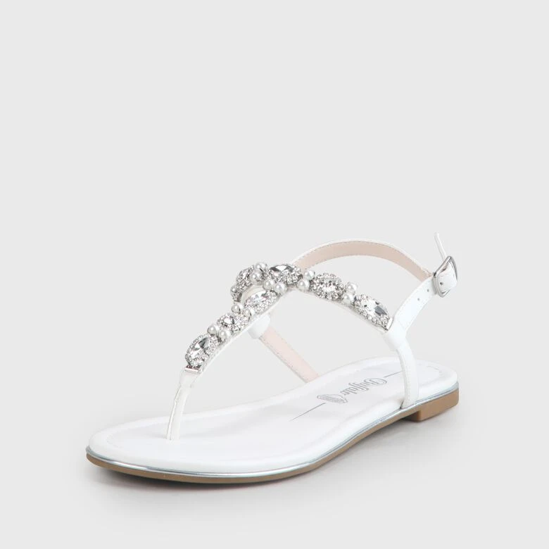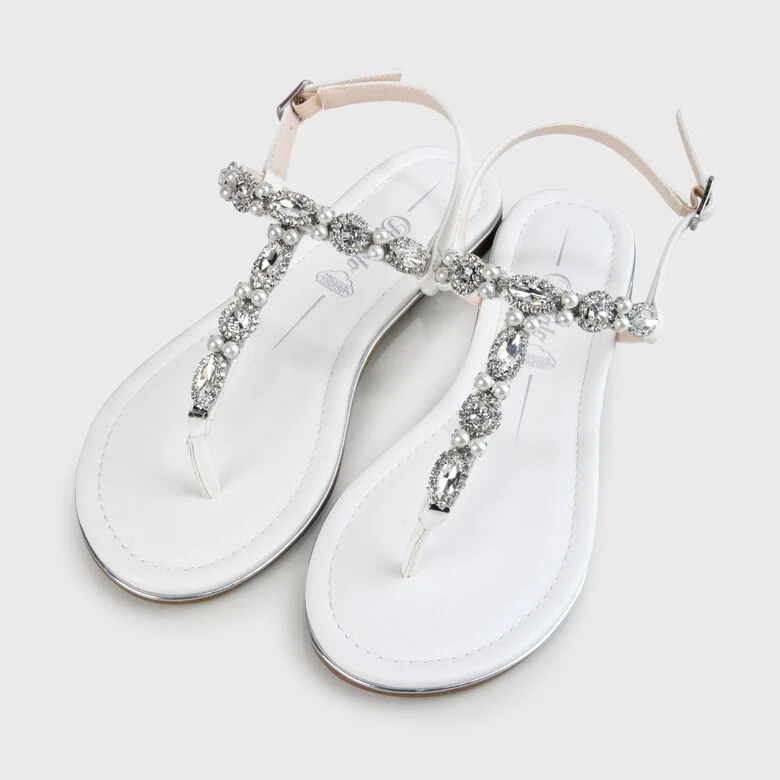 In der zarten Henriette Sandale schwebst Du als Braut an Deinem großen Tag stilsicher zum Altar – und auf Wolke Sieben! Der flache Schuh in edler Leder-Optik ist die perfekte Wahl für romantische Beach-Hochzeiten. Das offene Design mit Zehentrenner brilliert mit Riemchen, die mit funkelnden Perlen und Kristallen Deinem Liebsten den Atem rauben.