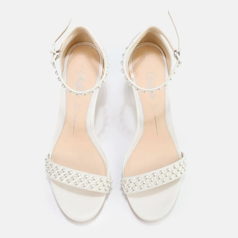 Der Charme der Liana Sandalette perlt an keinem ab. Das elegante It-Piece bezaubert sämtliche Betrachter mit romantisch glänzenden Perlen-Applikationen, die sich auf zarten Riemchen feminin um Deinen akzentuierten Fuß schmiegen. Durch den Pfennigabsatz mit geschlossener Fersenpartie kommt Dein dreamy Wedding Dress perfekt zur Geltung.