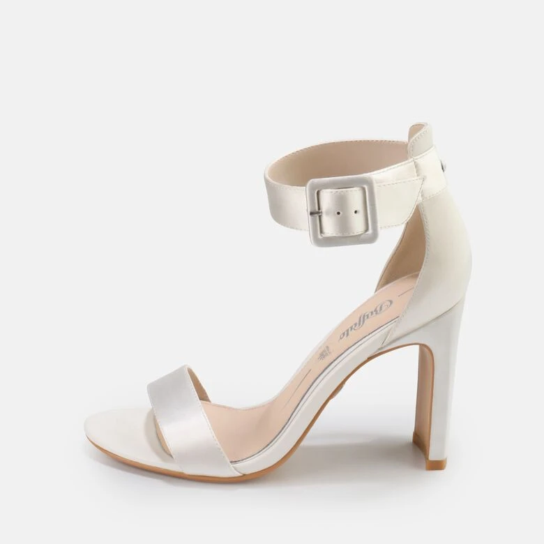 Liebe auf den ersten Schritt: Die Lorena Sandalette hat alles, was Dein Herz begehrt. Schimmernder Satin in Elfenbein schließt einen Bund mit einem modernen sowie bequemen Blockabsatz, der Dich leichtfüßig und anmutig über das Parkett schweben lässt. On top begeistert das It-Piece mit einer ultrastylishen Statement-Schnalle.
