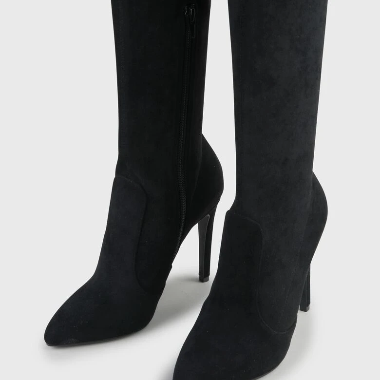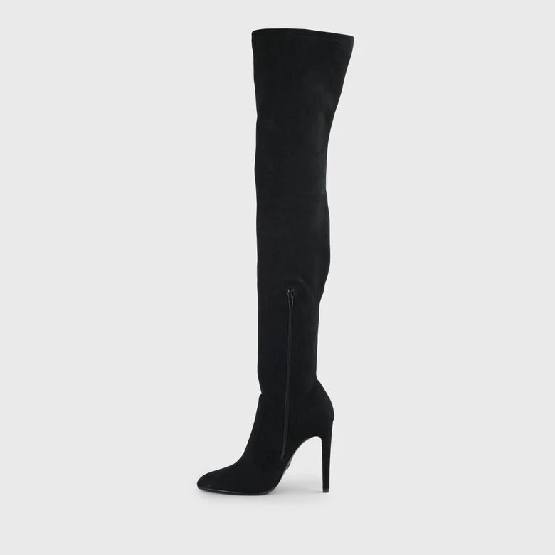 Nicht ohne Grund ist der elegante Marjorie Overknee ein absoluter Beststeller. Wie eine zweite Haut umhüllt der Stretchstoff in sexy Wildleder-Optik Dein Bein und setzt es zu stylishen Miniröcken oder Kleidern verführerisch in Szene. Auch der hohe Stiletto-Absatz lässt die Münder anderer Partygäste offenstehen.