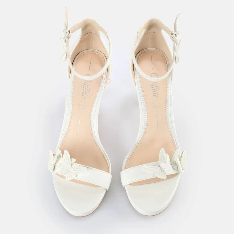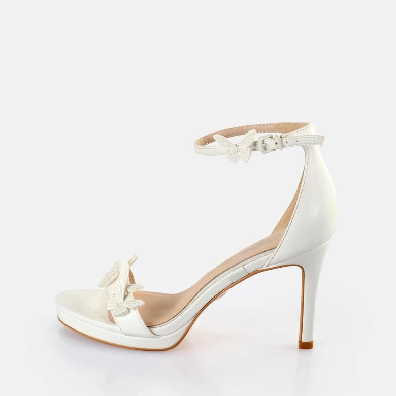 Mit der Mary Butterfly Sandalette wird der elegante Stiletto-Absatz mit atemberaubendem Design kombiniert. Auf den zarten Riemchen finden sich filigrane Schmetterlingsapplikationen und verleihen der leichten Sandalette ihre traumhafte Optik. Dabei sorgen die Einlegesohle aus hochwertigem Leder und der eingearbeitete Memory Foam für höchsten Komfort. Trage die Sandalette zu Deinem Brautkleid oder einem weißen Dress.