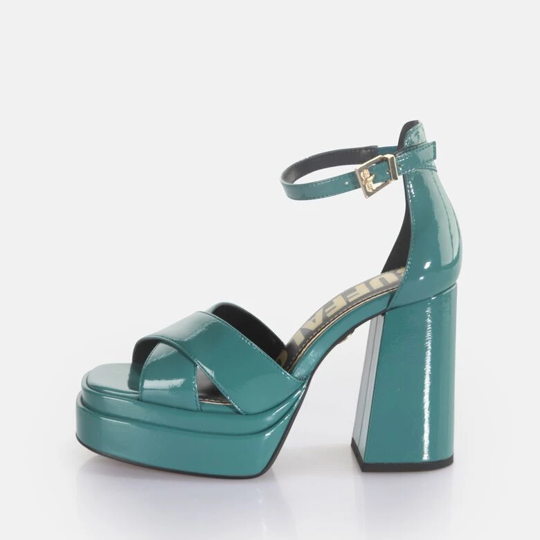 Die vegane Lack-Optik in stylischem Petrol sowie der hohe Tragekomfort machen die May Cross Sandalette zu einem echten Lieblingsstück trendverliebter Fashion-Looks. Mit dem ultrahohen Blockabsatz und dem filigranen Fesselriemchen bringst Du eine ordentliche Prise Glamour in Deinen Look. Für eine angenehme Traktion auf Schritt und Tritt sorgen die angenehme Leichtigkeit sowie die Sohle mit Memory Foam.