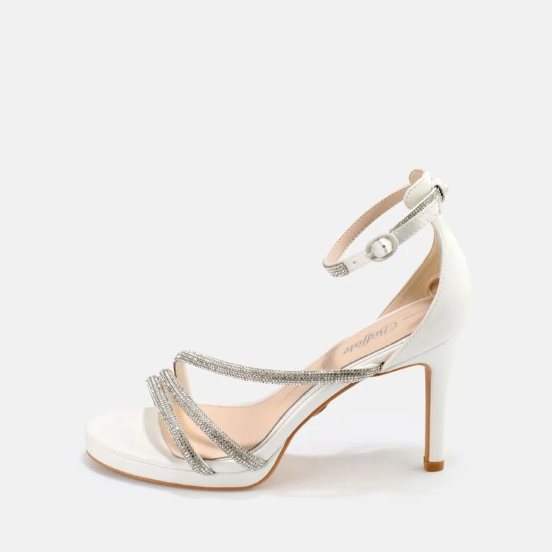 Die dreamy Noemi Sandalette erfüllt Deine schönsten Fashion-Träume. Elegante Riemen umarmen asymmetrisch Deinen Fuß und überzeugen in einem luxuriösen Dress aus Glitzersteinen. Ein zartes Knöchelriemchen hält Dich trotz sexy Pfennigabsatz fest im Schuh, sodass Du modisch sowie auf dem Dancefloor den Ton angibst.