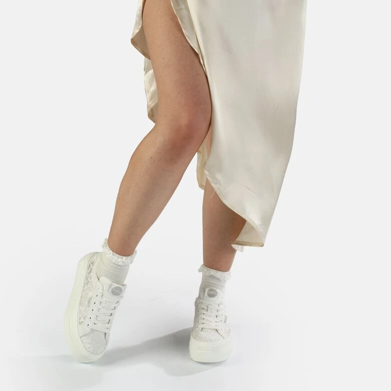 Du bist ein absolutes Sneaker-Fangirl? Dann bleib Dir auch an Deinem Wedding Day treu und flashe alle mit dem unkonventionellen Paired Bloom Sneaker weg! Sein Upper mit romantischer Spitze verleiht Deinem Dress eine Extraportion Eleganz, während Dich die chunky Plateausohle ganz ohne Fußschmerzen einige Zentimeter größer zaubert.