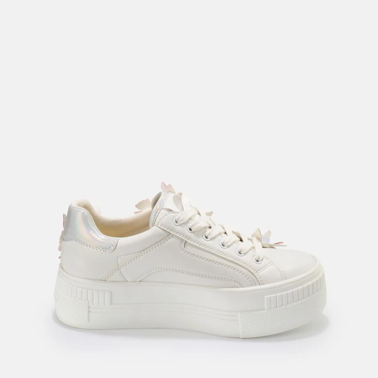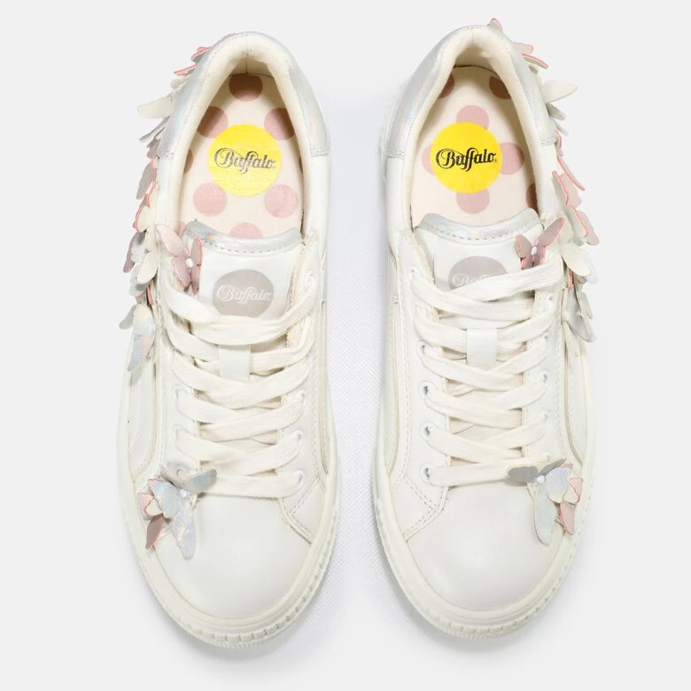 Schmetterlinge im Bauch? Die gibt’s mit dem Paired Butterfly Sneaker nun auch für die Schuhe! Das Obermaterial ist mit zahlreichen quirligen Schmetterlingen verziert, während die hohe Laufsohle in Weiß dem Schuh seinen sportlichen Akzent sowie etwas 90er-Flair verleiht.