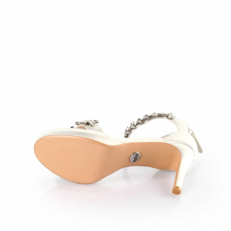 Mit der Pia Sandalette hast Du den Schmuckstein sowohl am Finger als auch Fuß. Die beiden eleganten Riemchen strahlen durch ihre unzähligen Kristalle mit Dir um die Wette. Auch der edle, elfenbeinfarbene Satin beglückt Dich mit Glamour, der an Deinem großen Tag als Braut seinesgleichen sucht.