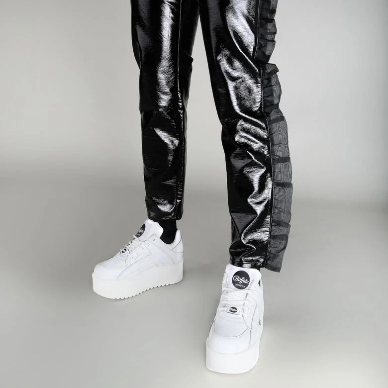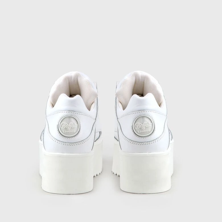 Clean & extreme: in den 90ern sah man sie überall, jetzt sind die ikonischen Rising Towers zurück und jetzt schon ein wahres Must-have in Fashionkreisen. Hier zeigt sich die ikonische Sneaker-Silhouette mit einem weißen Nappaleder, einer ebenso in Weiß gehaltenen Tower-Plateausohle und typischen Buffalo London Logodetails.