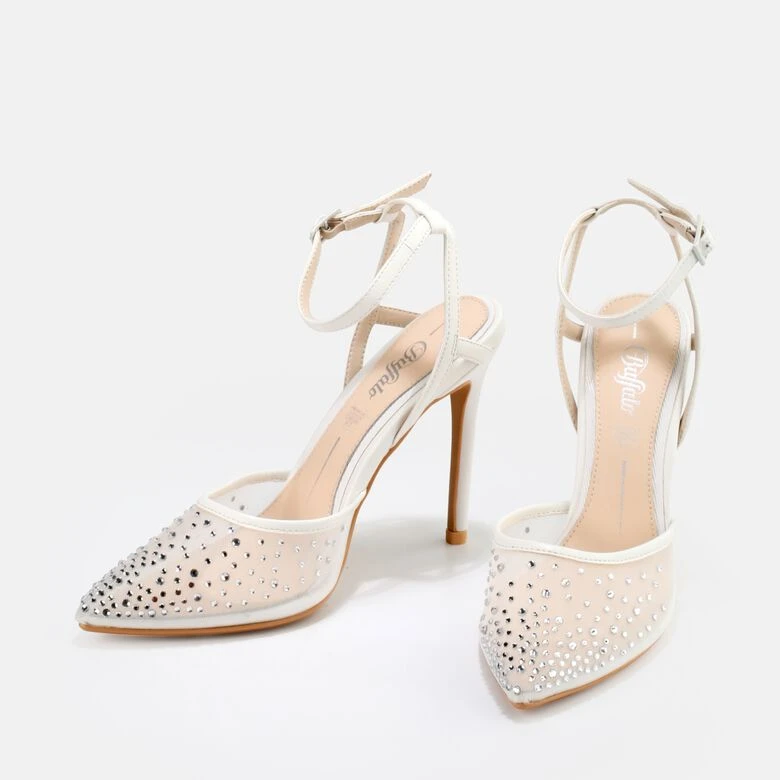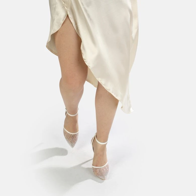 Trägst Du den märchenhaften Romina Pump am Fuß, geht Dir an Deinem großen Tag sämtliche Bewunderung ins Netz. Das It-Piece wartet vorne mit transparentem Netzstoff auf, in dem verspielte Hotfix-Strasssteine mit Deinen Augen um die Wette funkeln. Auch der ultrahohe Pfennigabsatz setzt Dich elegant in Szene.