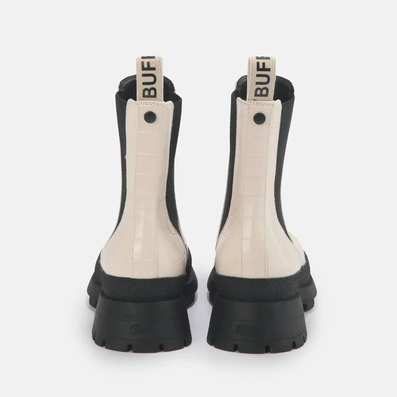 Im Chelsea-Style mit schwarzen Stretch-Einsätzen an der Seite präsentiert sich der Simona Bootie als wahre Diva im Schuhschrank. Die mattglänzende Oberfläche in Creme wird stimmig abgerundet durch eine angesagte Croco-Optik und die breite Außensohle drängt nach außen – ab ins Abenteuer!