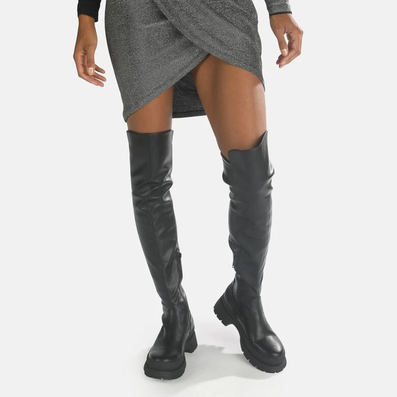 Mit dem schwarzen Sofia Boot bist Du modisch perfekt unterwegs. Er begeistert mit einem klassischen, einfarbigen Design. Für einen femininen Walk of Fame sorgt zudem der 4,5 cm hohe Blockabsatz sowie die attraktive Overknee-Länge. Trage ihn zu einem weißem Pullover, Röcken oder Shorts und schwarzer Strumpfhose für ein verspieltes Casual-Outfit.