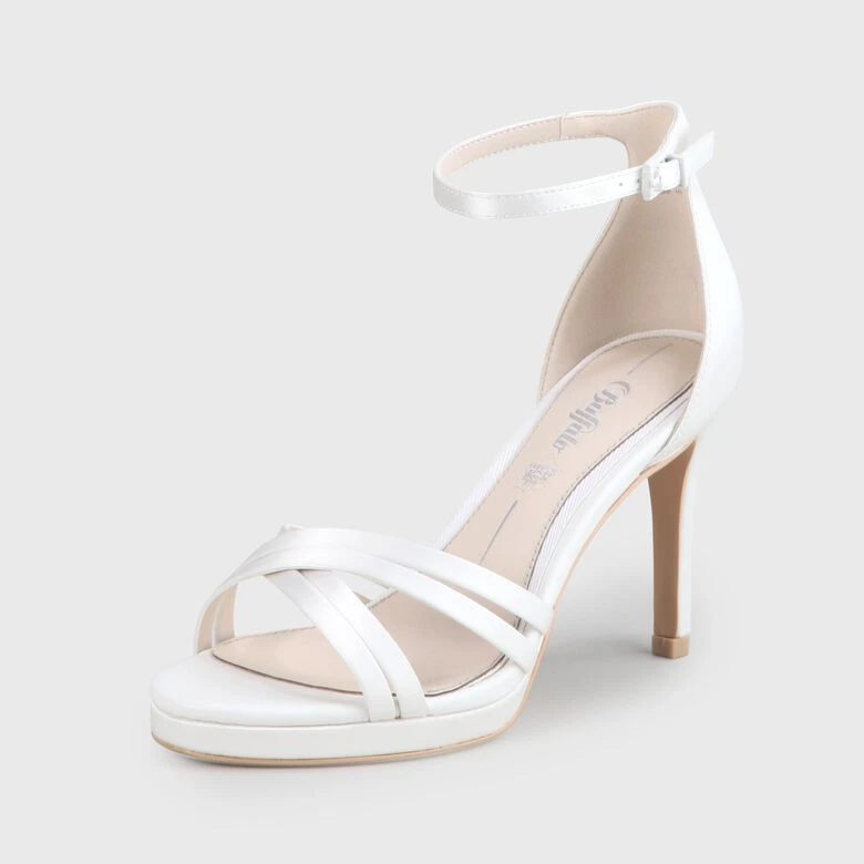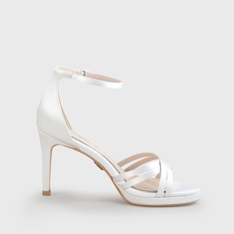 So zeitlos wie Deine Liebe ist auch das Design der Xenia Sandalette. Wunderschön überkreuzte Riemchen verleihen der eleganten Silhouette zusätzlichen Glamour und blitzen als stylishe Eyecatcher unter Deinem Dress hervor. Für strahlende Auftritte garantiert der schimmernde Satin, den der hohe Pfennigabsatz wirkmächtig betont.